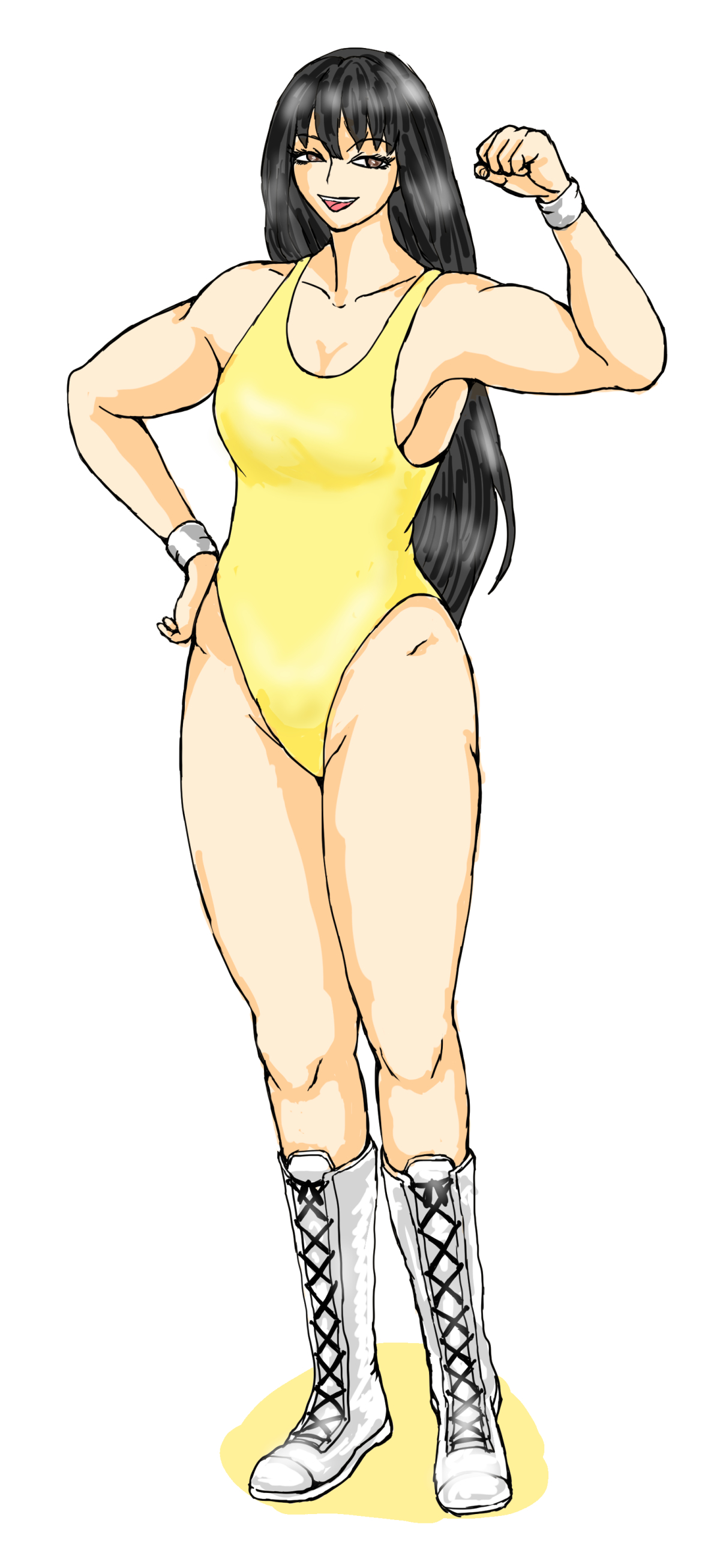 YUEを倒すことに執念を燃やし、ヒールレスラーの様な振る舞いをする永野が、ミミ萩原を思わせる白い水着というのは面白いですね。